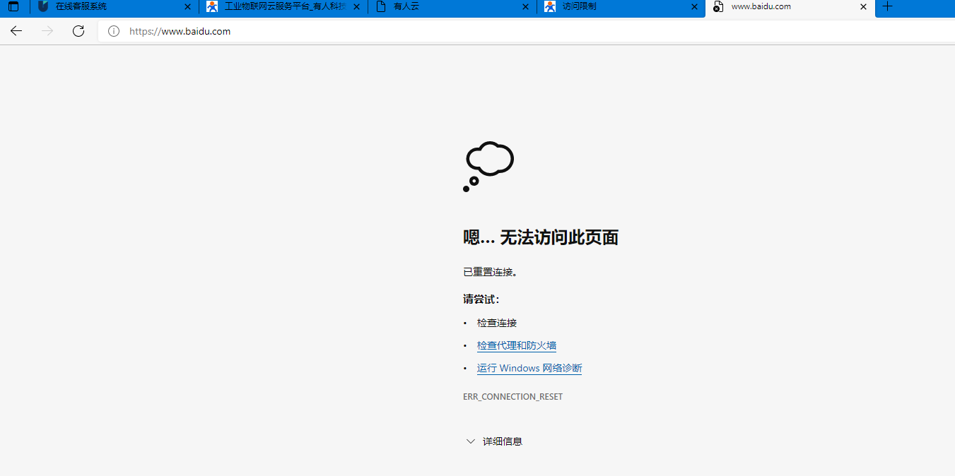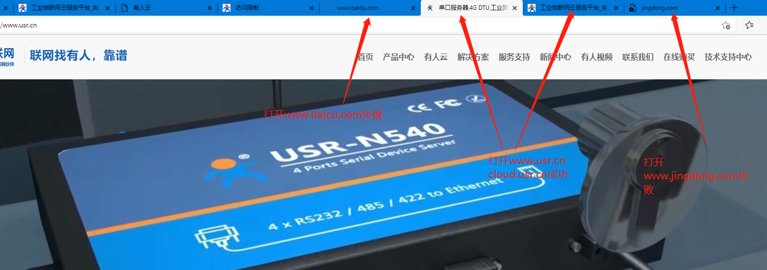 3、等待參數(shù)生效后,我們再次打開www.baidu.com以及cloud.usr.cn測試