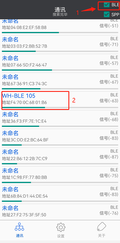 說明:BLE105是BLE藍牙,與手機連接通信需要手機安裝支持BLE協(xié)議的藍牙app才可以連接通信。