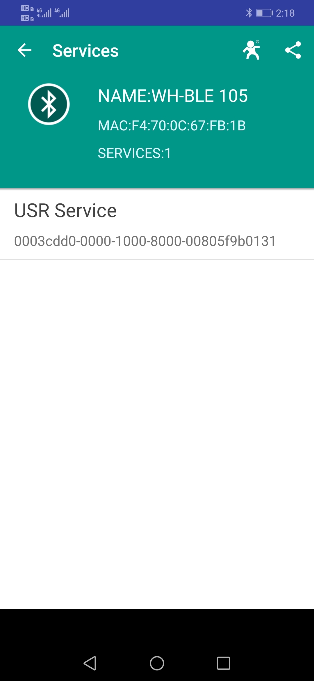 3、點(diǎn)擊WH-BLE105,顯示主服務(wù)