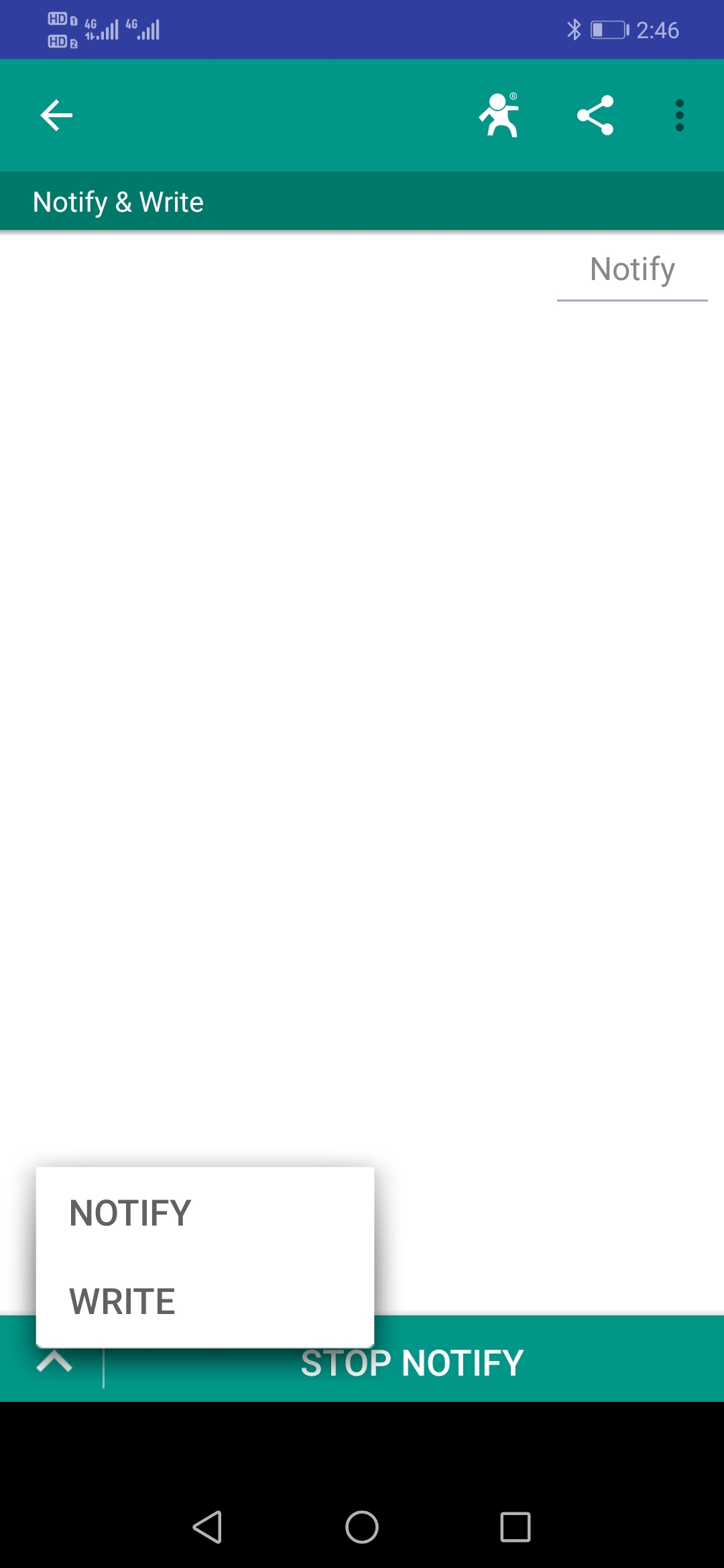 7、點(diǎn)擊藍(lán)牙APP左下角,彈出選擇,點(diǎn)擊WRITE