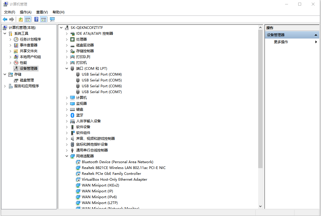 WH-BLE105焊在底板,底板5V供電,USB-RS232串口線接WH-BLE105底板的232串口,USB接電腦。電腦打開設備管理器,點開端口,確認USB-RS232串口線的COM口號。