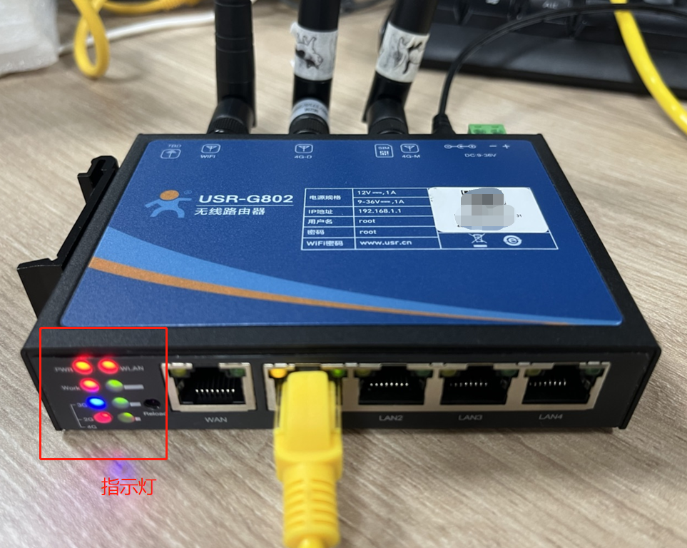 注意:上電之后,觀察指示燈:PWR常亮、WLAN燈常亮、4G 燈(3G+2G 燈)點亮、信號燈全亮代表信號良好