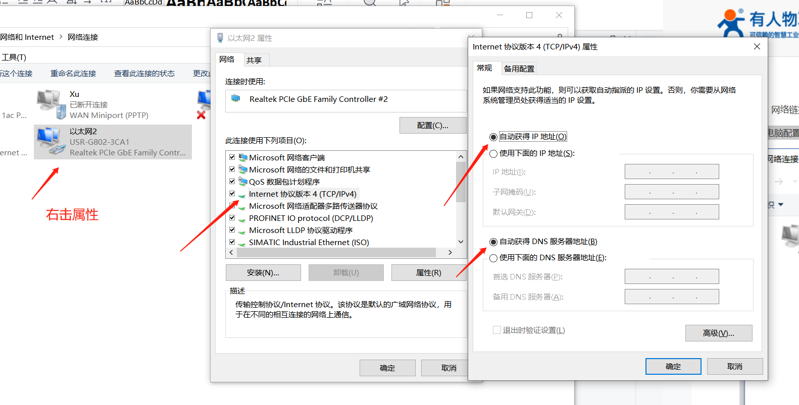 1) 電腦配置網(wǎng)卡,選擇自動獲取IP地址
