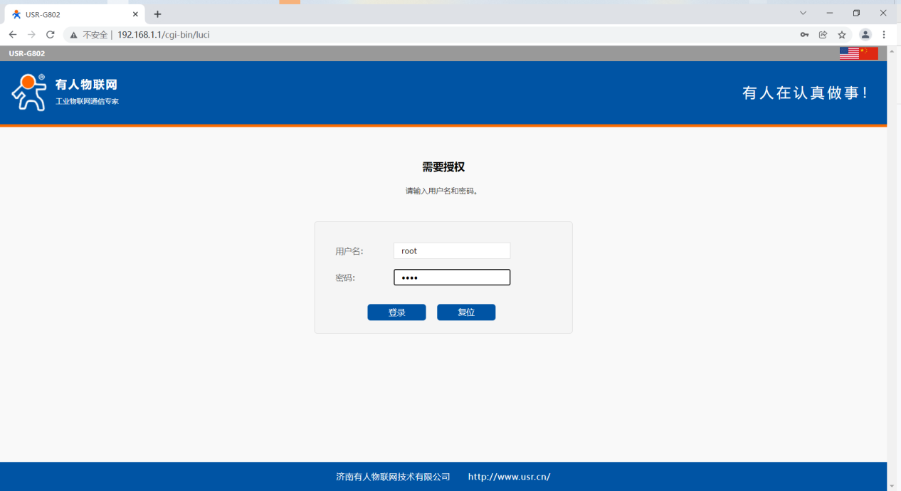 1) 打開瀏覽器(建議使用谷歌瀏覽器),在地址欄輸入192.168.1.1,出廠默認用戶名密碼為root