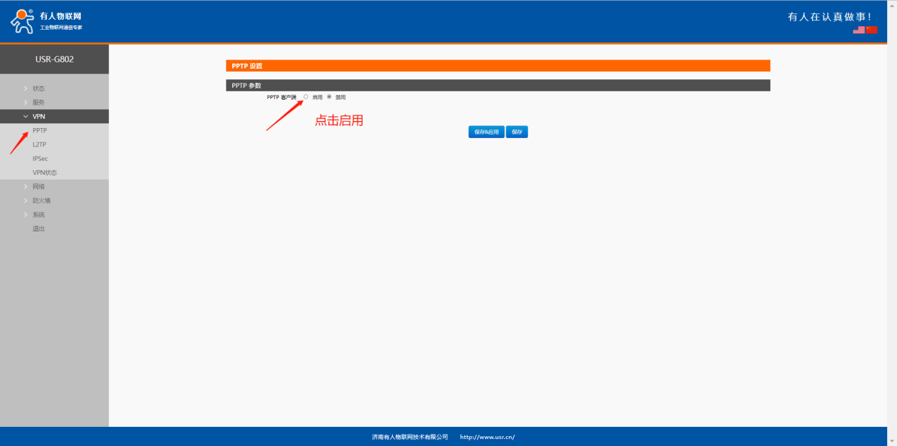 2)點擊VPN-->PPTP,啟用PPTP客戶端,