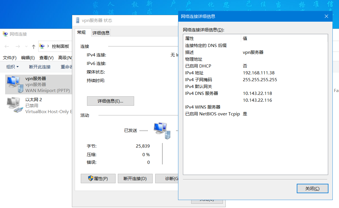 然后我們可以從網(wǎng)絡(luò)適配器哪里查看VPN服務(wù)器給電腦分配的信息