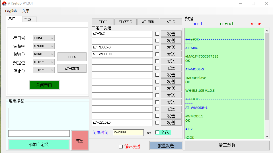 (2)發(fā)送AT+MAC查詢主機(jī)MAC:F4 70 0C 67 FB 21