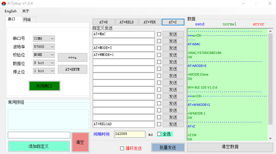 二、WH-BLE105從機(jī)2模塊參數(shù)設(shè)置: