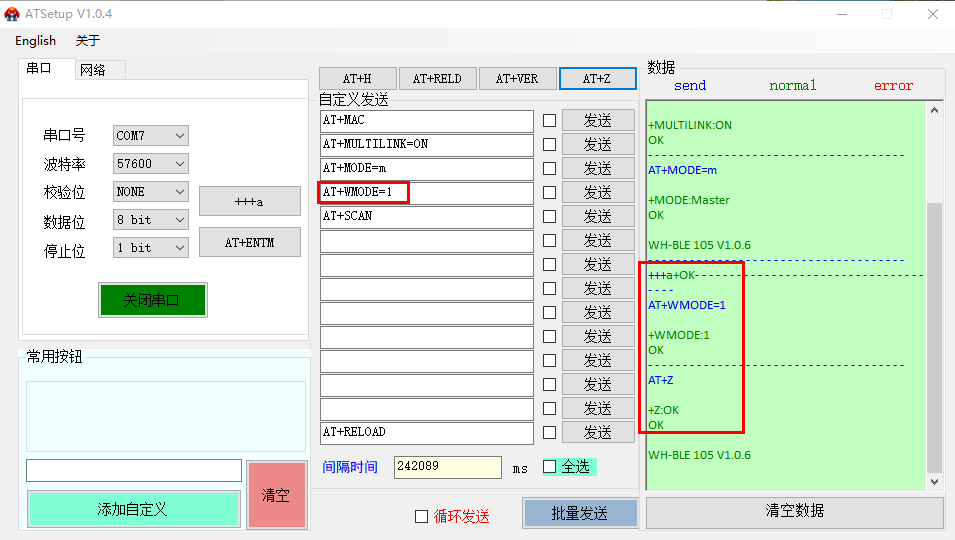 四、WH-BLE105主機(jī)模塊參數(shù)設(shè)置:
