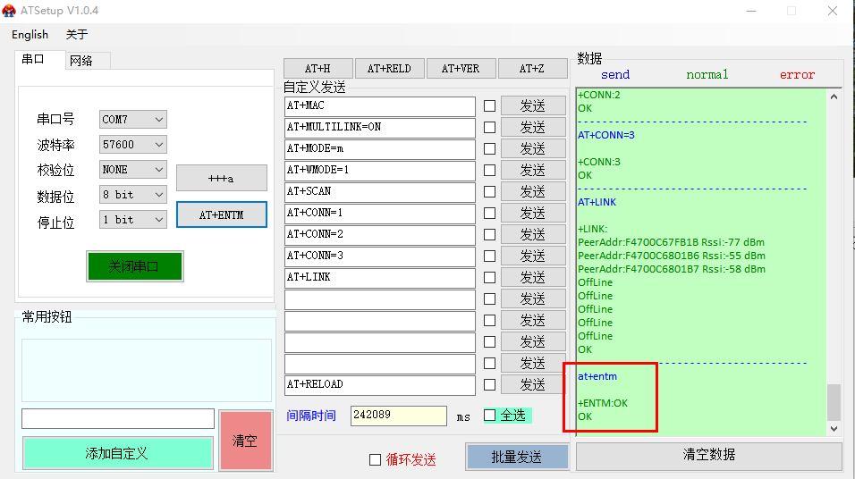(5)查詢連接成功后,發(fā)送指令退出 AT 模式即可進(jìn)行數(shù)據(jù)傳輸: AT+ENTM