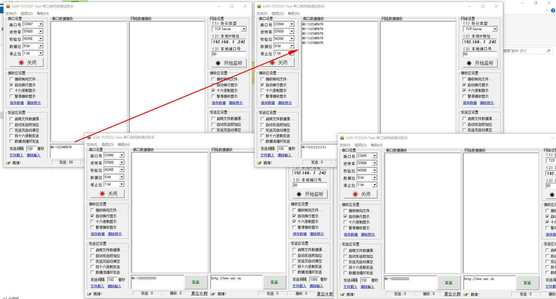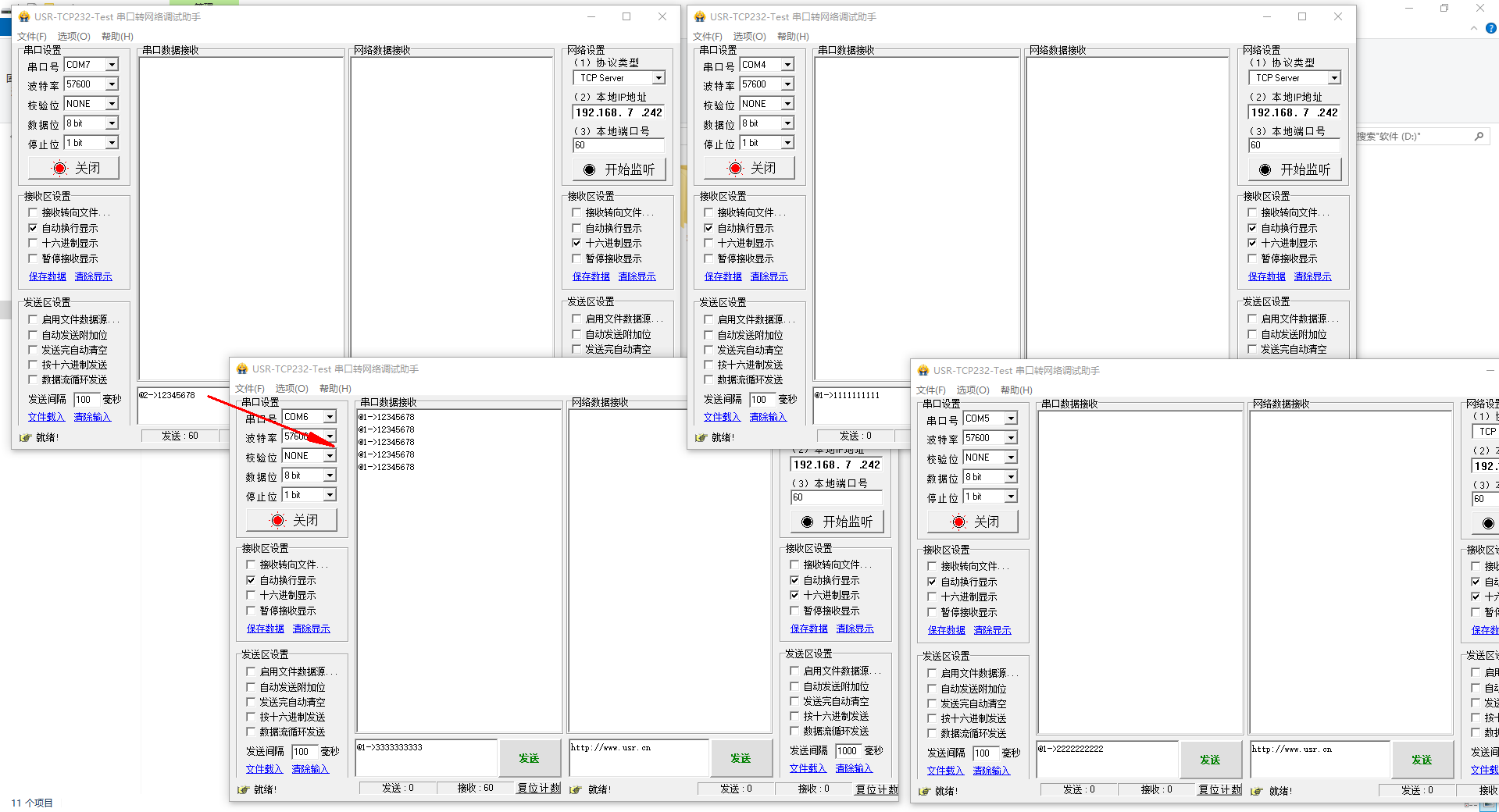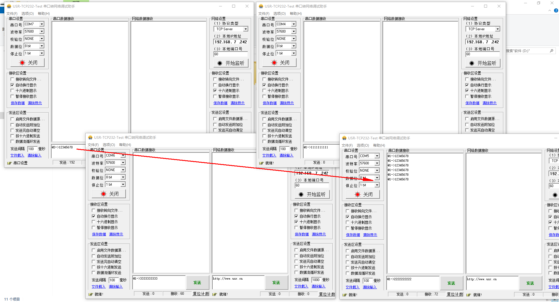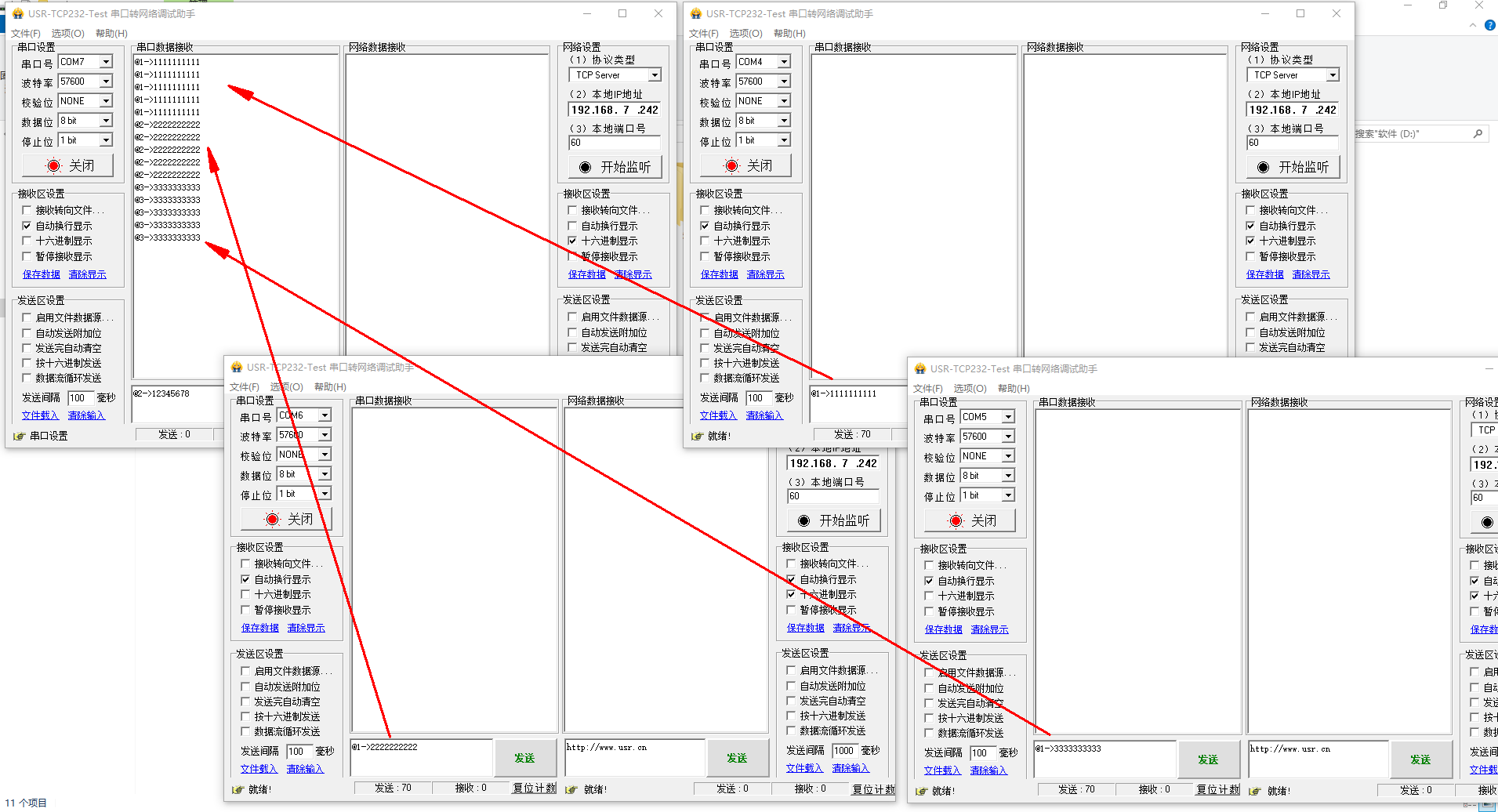 備注:COM7 接的主機(jī),COM4接的從機(jī)1,COM5接的從機(jī)2,COM6接的從機(jī)3。