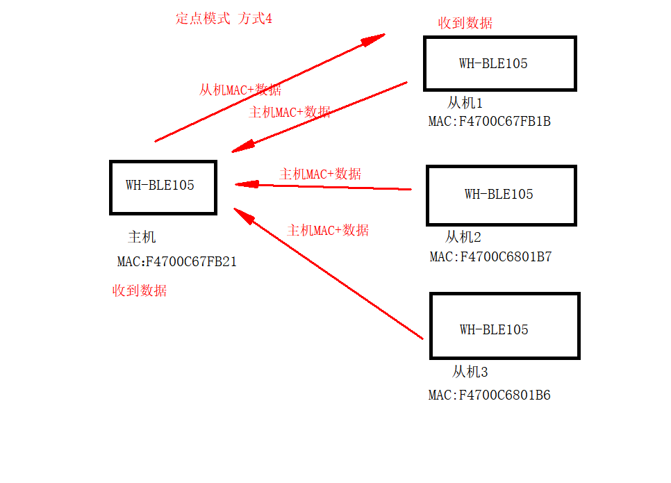 WH-BLE105定點(diǎn)模式方式四的一主三從測試示例