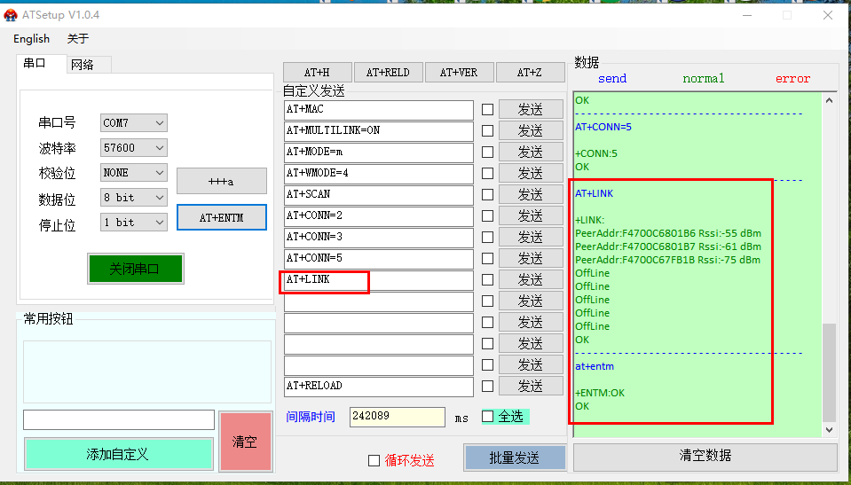 (2)發(fā)送AT+MAC查詢從機(jī)MAC:F4 70 0C 68 01 B7