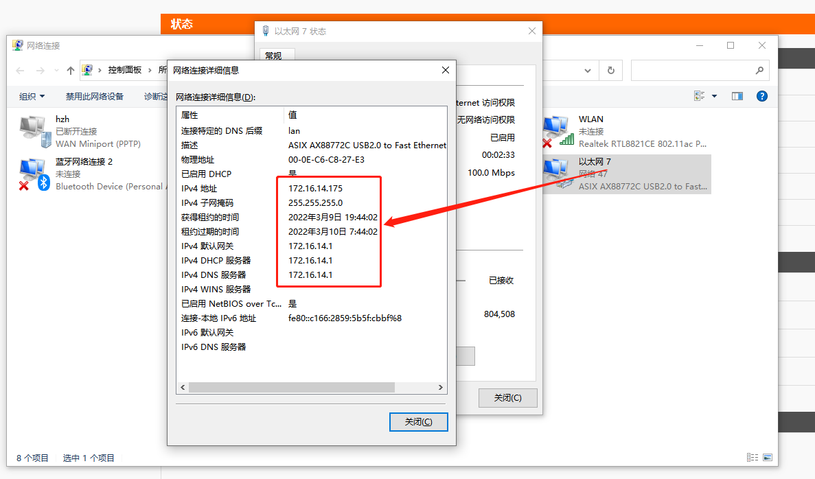 10、修改參數(shù)后,網(wǎng)線通過LAN連接電腦,可以看到電腦獲取到的IP為192.168.10網(wǎng)段;網(wǎng)線通過LAN2連接電腦,可以看到電腦獲取到的IP為10.10.100網(wǎng)段;LAN3、LAN4連接電腦獲取到的IP也與設置的網(wǎng)關一致