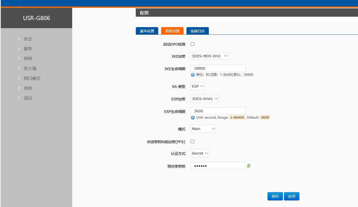 DPD 操作:設(shè)置連接檢測的操作。包括重啟、拆除、保持、無,默認(rèn)重啟