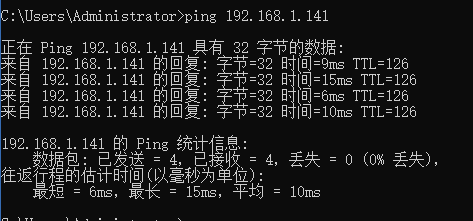 4、此時互相 ping 對端子網(wǎng)也是連通狀態(tài)