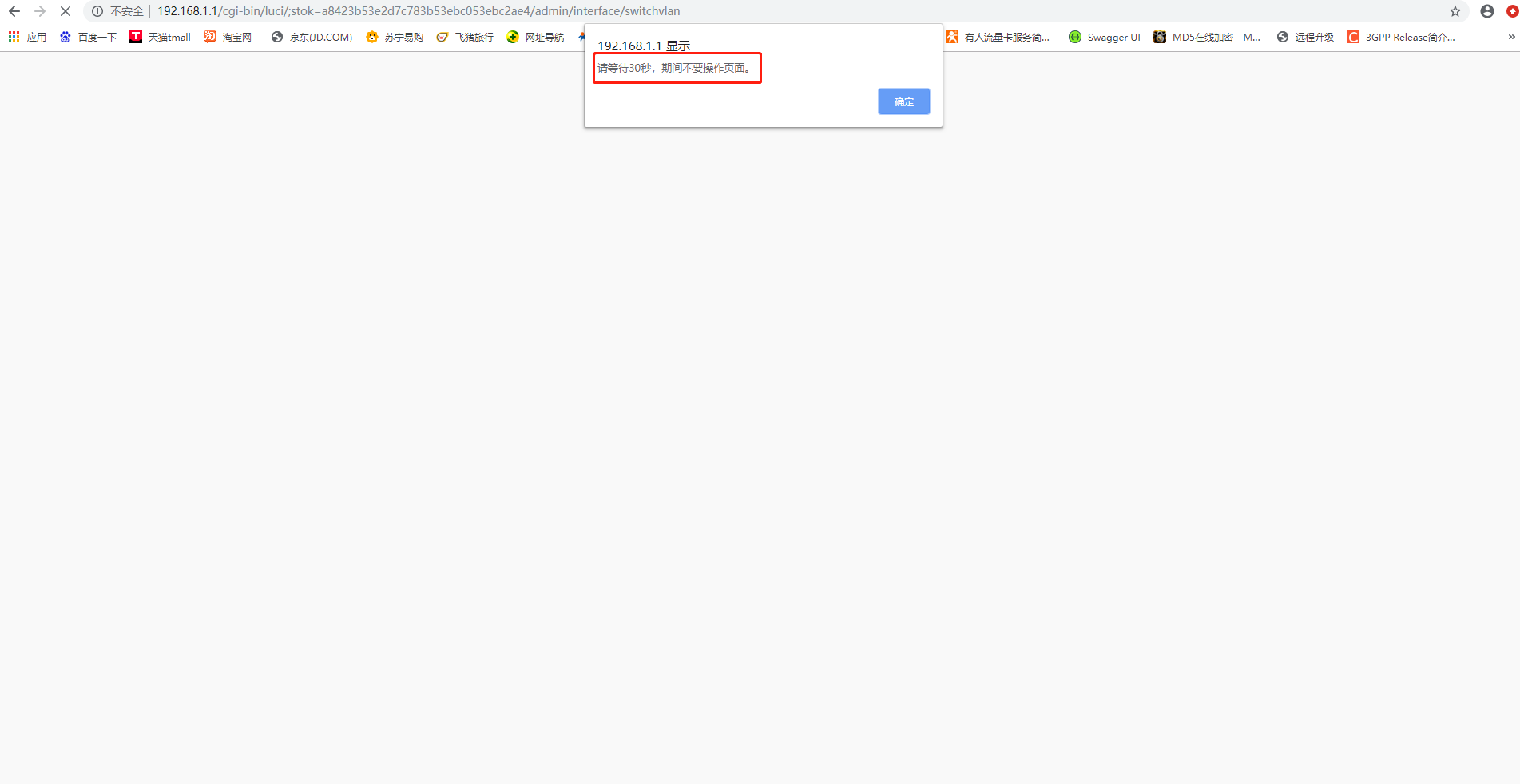 5、路由器生效過程中會提示等待30s,在此期間一定不要對該網(wǎng)頁進(jìn)行操作