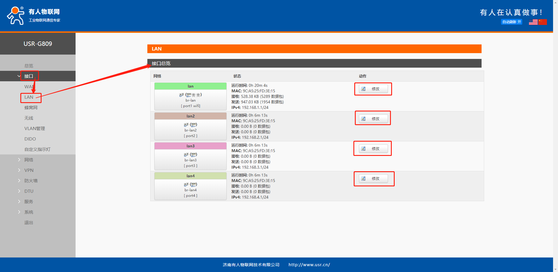 7、進(jìn)入接口-LAN界面可設(shè)置對應(yīng)的VLAN網(wǎng)段