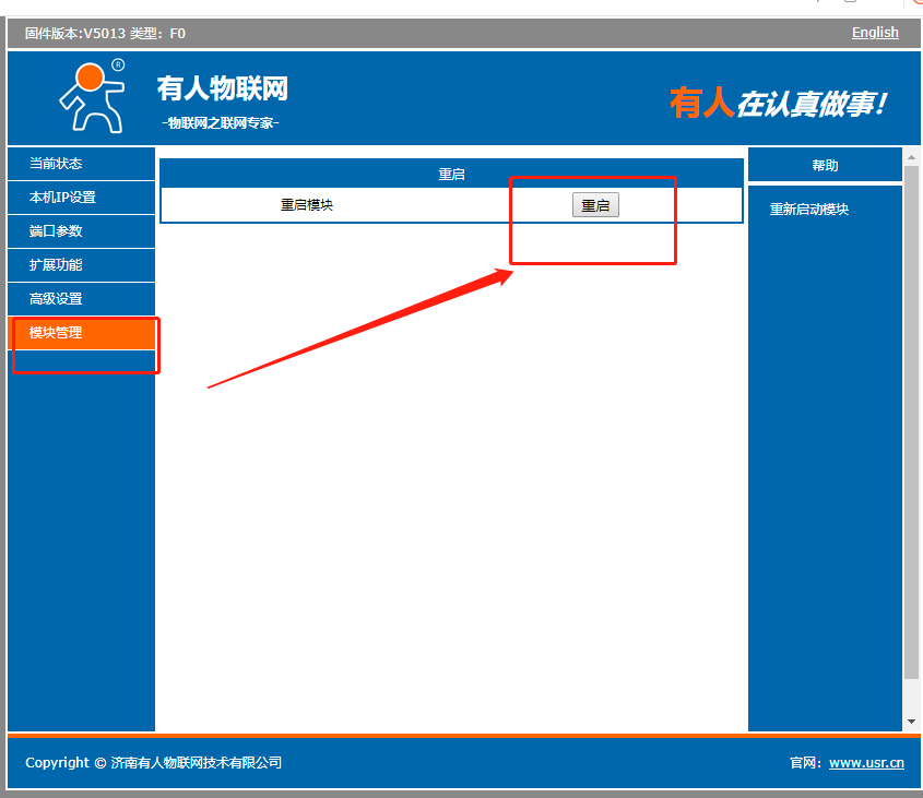 7. 所有參數(shù)設(shè)置完成后重啟設(shè)備生效。