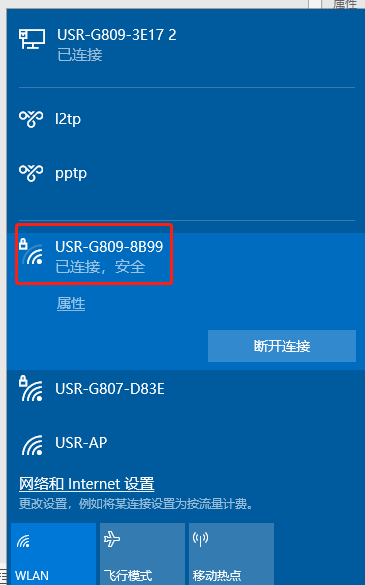1、連接wifi:電腦連接USR-G809的wifi