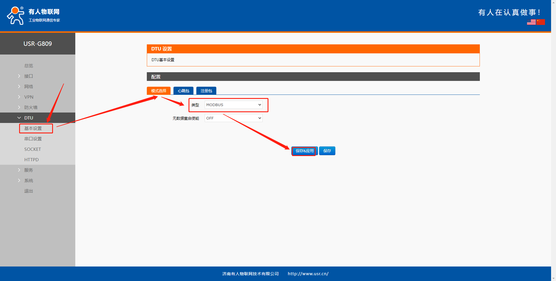 3、設(shè)置modbus網(wǎng)關(guān)模式