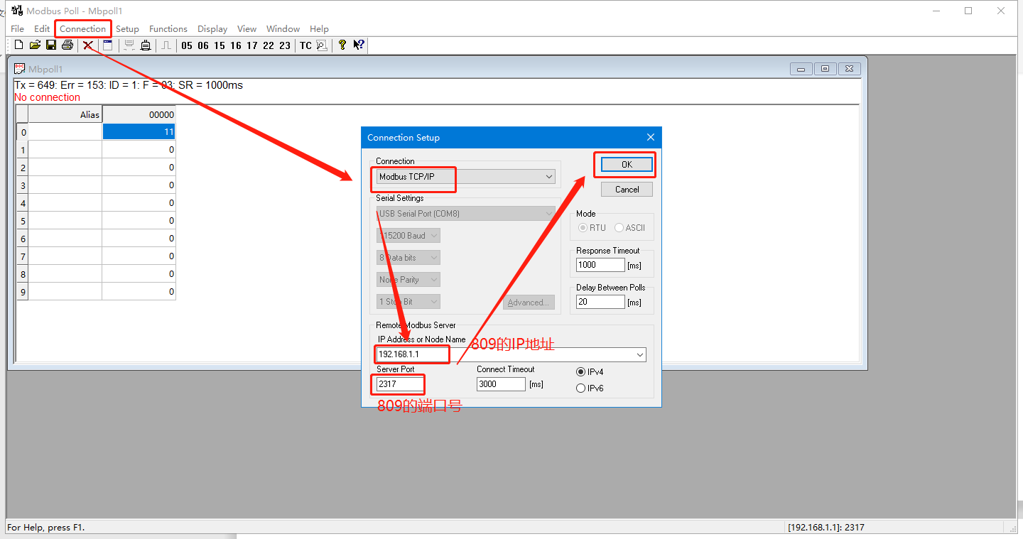 6. 設(shè)置modbus poll軟件