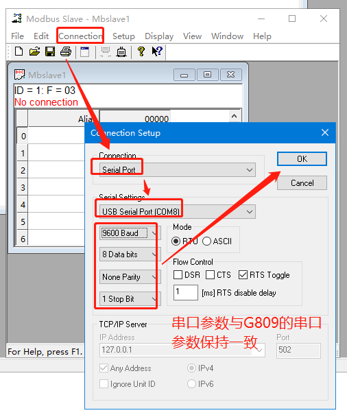 7. 設(shè)置modbus slave軟件
