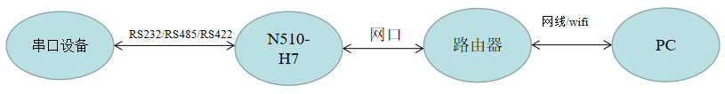 1>硬件連接:N510-H7的串口通過USB轉(zhuǎn)232/485/422連接到電腦上,電腦和N510-H7接在同一個路由器上