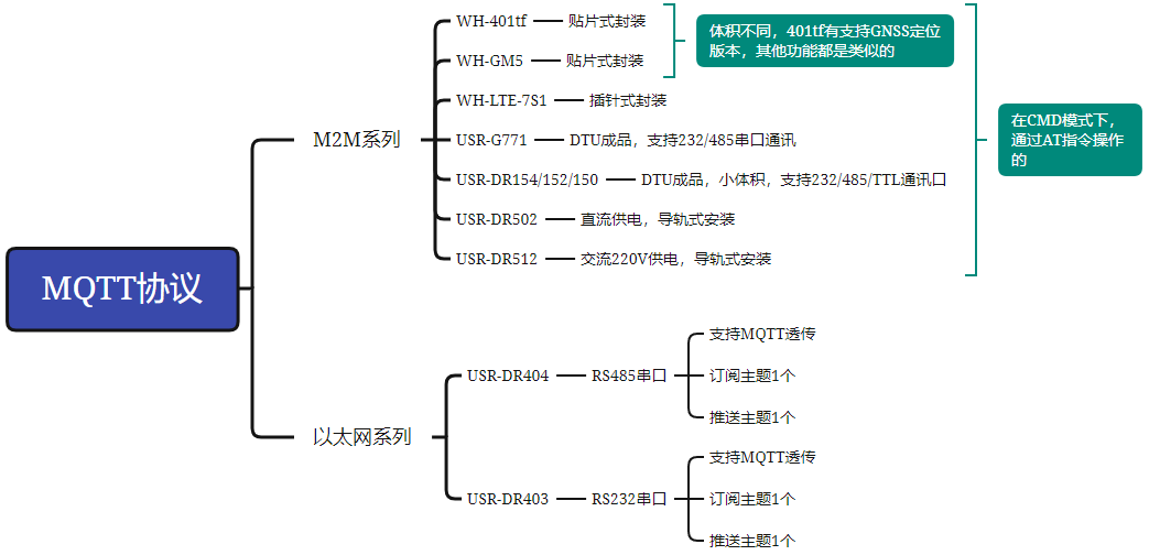 目前我司設備支持的MQTT協(xié)議主要是兩種:MQTT透傳以及指令MQTT。目前支持MQTT協(xié)議的產(chǎn)品型號主要有以下幾種