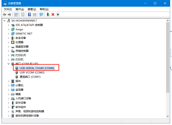 找到設(shè)備管理器,點(diǎn)擊端口,確認(rèn)USB-RS485串口線的COM口號(hào),有人測(cè)試電腦是COM6