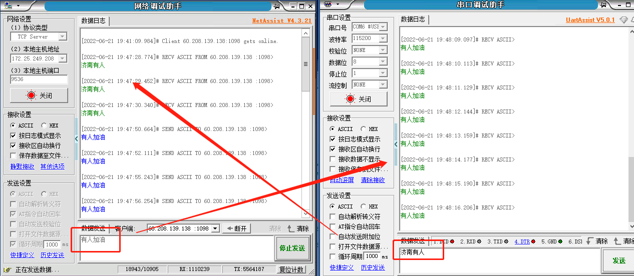 USR-N540 H7(二期)連接遠(yuǎn)程服務(wù)器通信測(cè)試