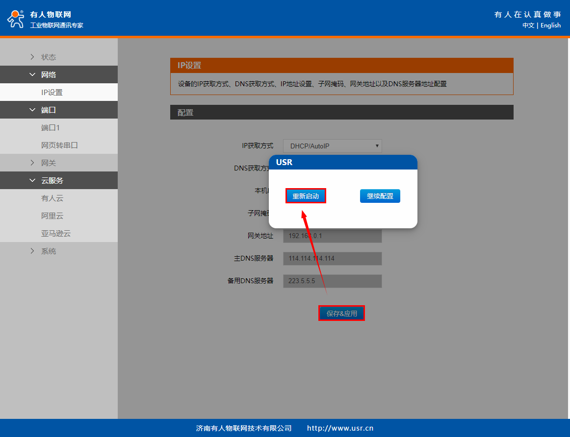 點擊“保存&應(yīng)用”,點擊“繼續(xù)配置”。