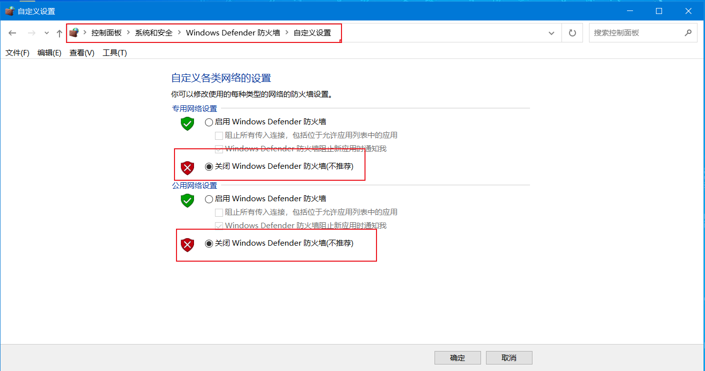 2.按路徑:控制面板》網(wǎng)絡(luò)和Internet》網(wǎng)絡(luò)和共享中心找到“windows防火墻”和“更改適配器設(shè)置”選項(xiàng),關(guān)閉防火墻并禁用與本次測試無關(guān)的網(wǎng)卡。并關(guān)閉電腦殺毒軟件。