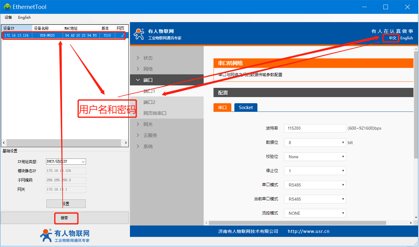 2>重新搜索設(shè)備:搜索設(shè)備---雙擊設(shè)備---輸入用戶名和密碼---切換為中文顯示---打開端口設(shè)置界面