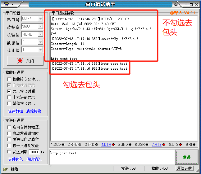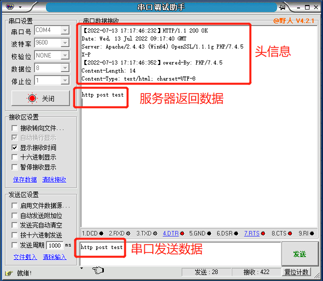 4. 數(shù)據(jù)測(cè)試:我司測(cè)試服務(wù)器的功能就是:串口發(fā)送數(shù)據(jù)給服務(wù)器,服務(wù)器將數(shù)據(jù)原封不動(dòng)的返回