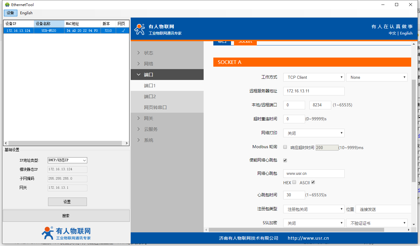USR-N520-H7-4(二期)連接路由器實現(xiàn)局域網數(shù)據(jù)通訊案例