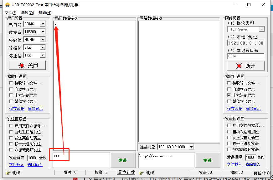 10)可以先判斷一下串口是否通了,可以在串口發(fā)送+++,如果設(shè)備收到+++后會自動返回a,所以如果收到a就說明串口已經(jīng)通了