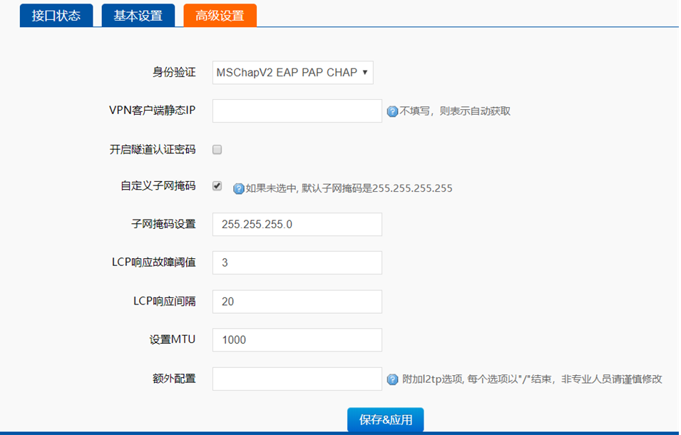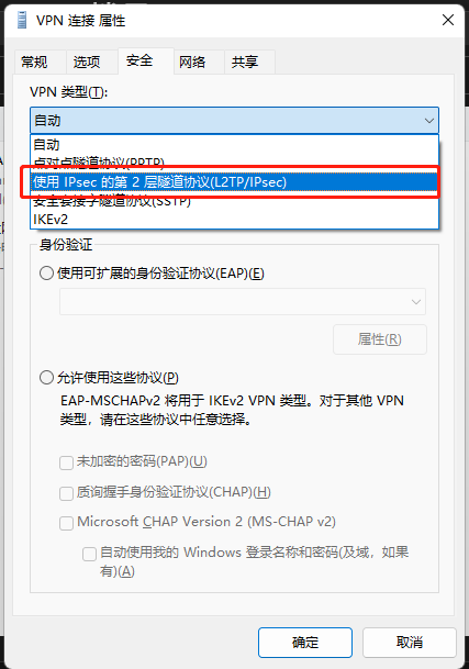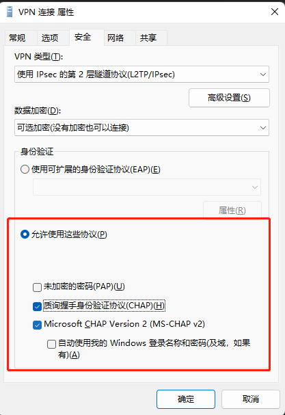 高級(jí)設(shè)置:身份驗(yàn)證選擇MSCHAPV2 EAP PAPA CHAP。