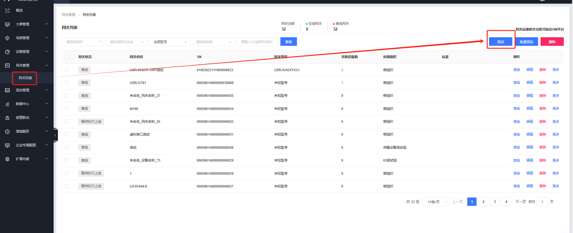 網(wǎng)關管理--網(wǎng)管列表--添加