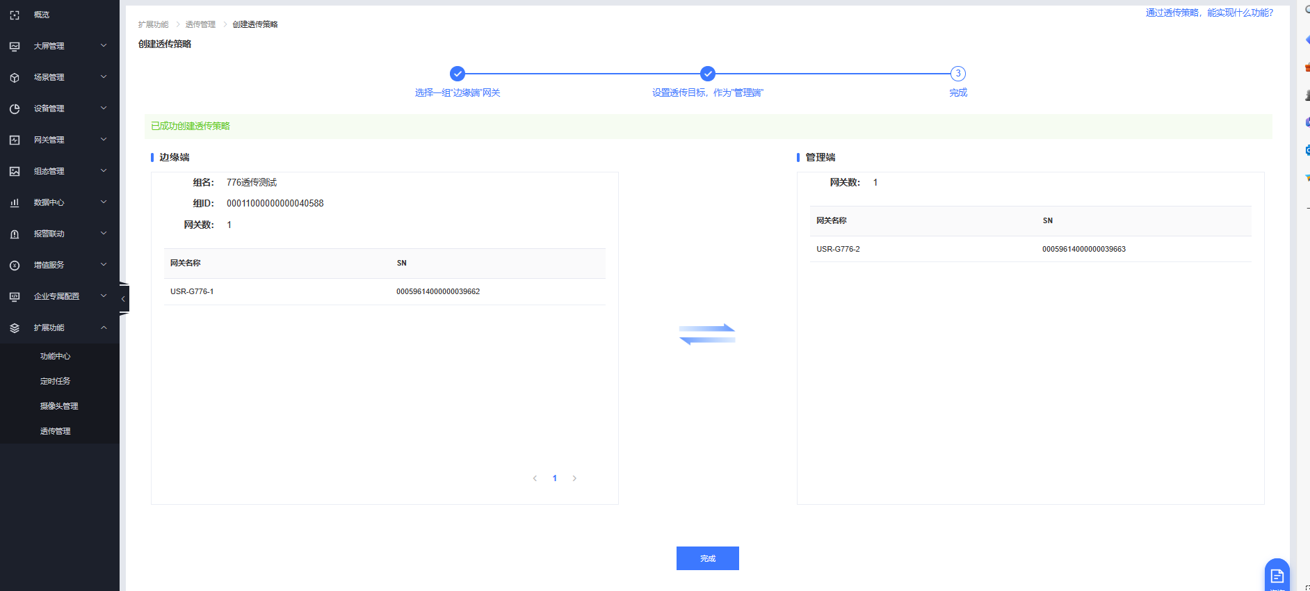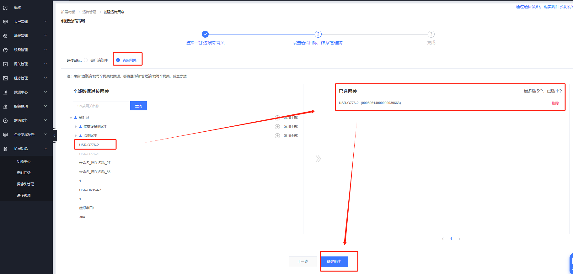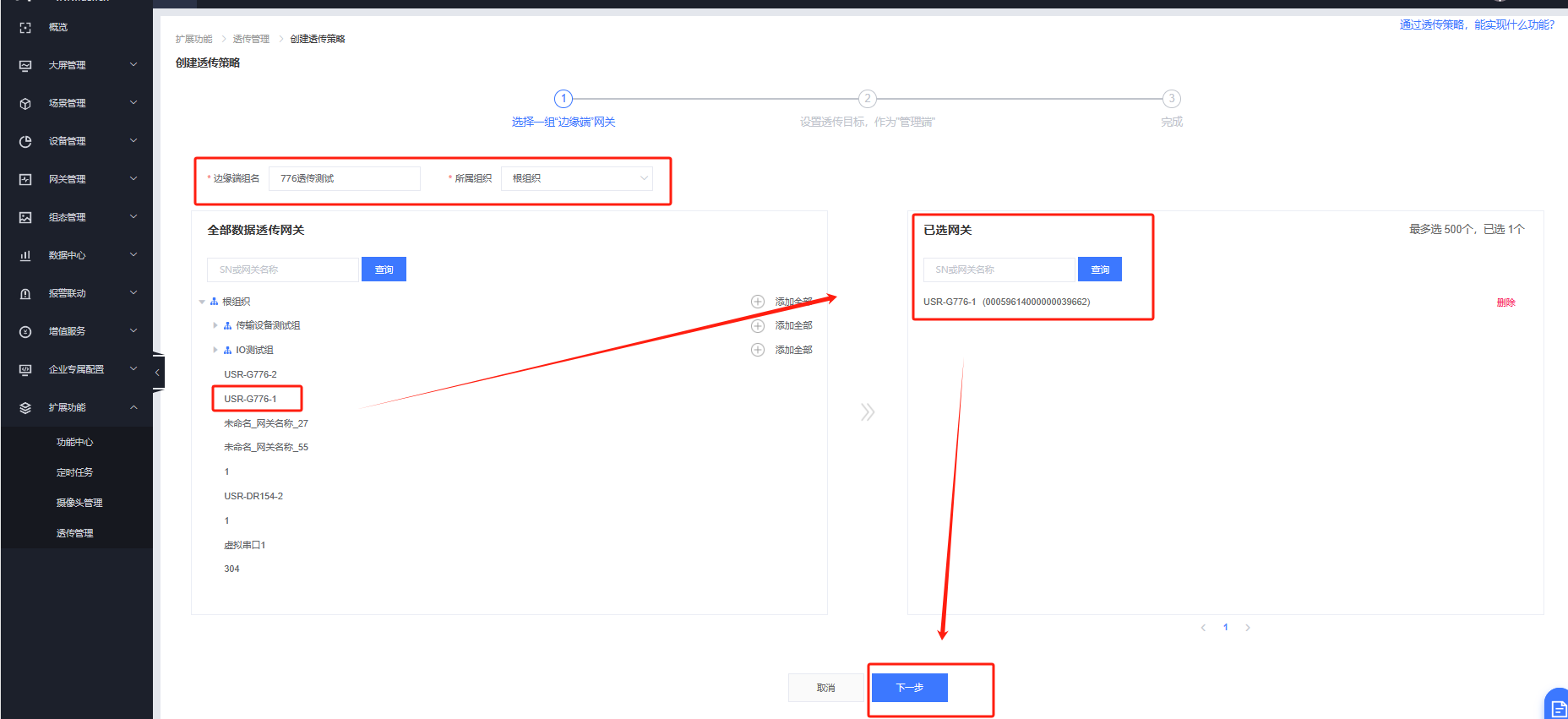 設置透傳名稱,選擇組織,選擇邊緣端網(wǎng)關