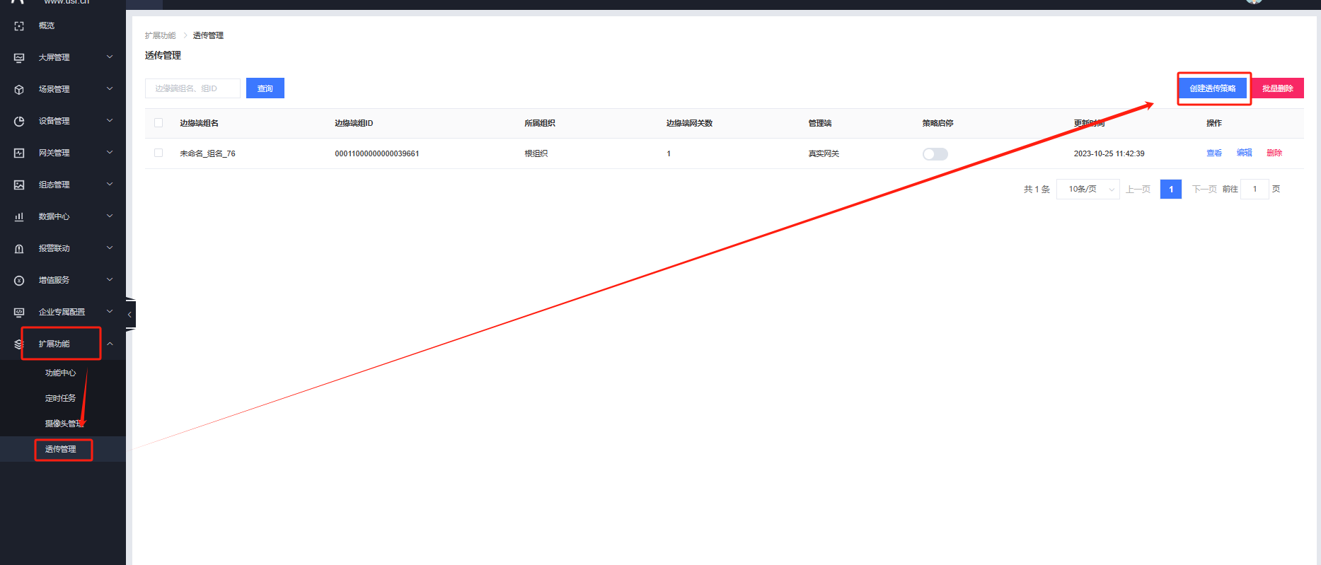 9、在擴展功能,透傳管理,點擊“創(chuàng)建透傳策略”。