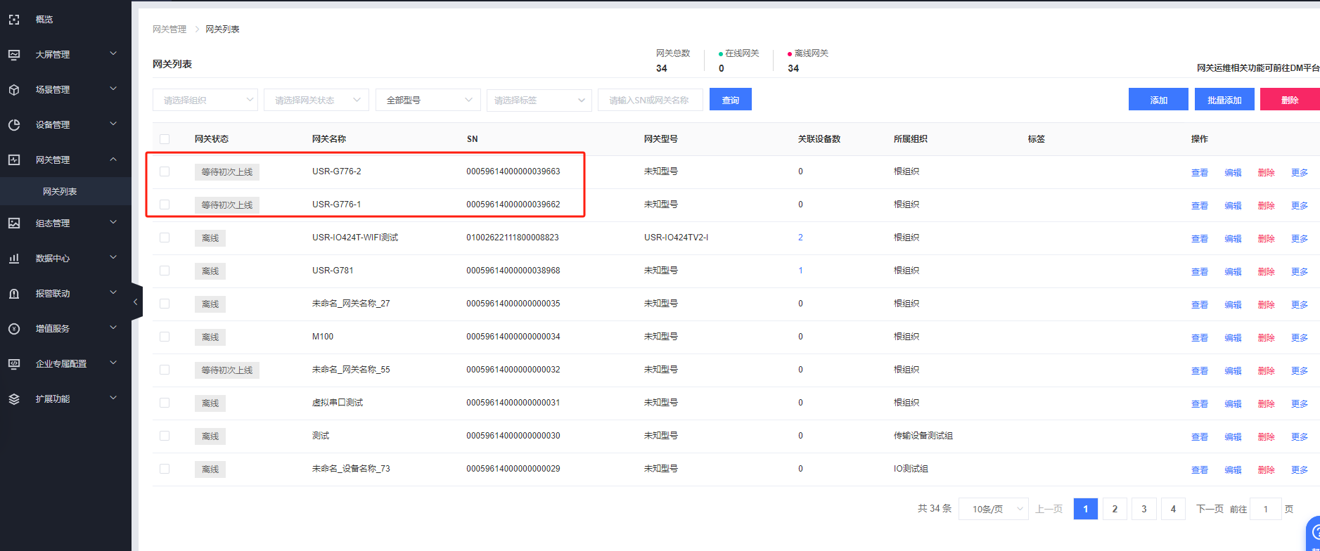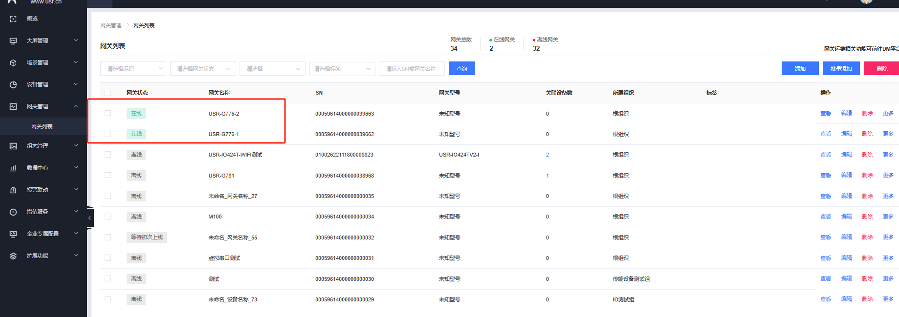填入網(wǎng)關名稱,選擇根組織,選擇SN不支持,開啟有人云透傳,保存即可