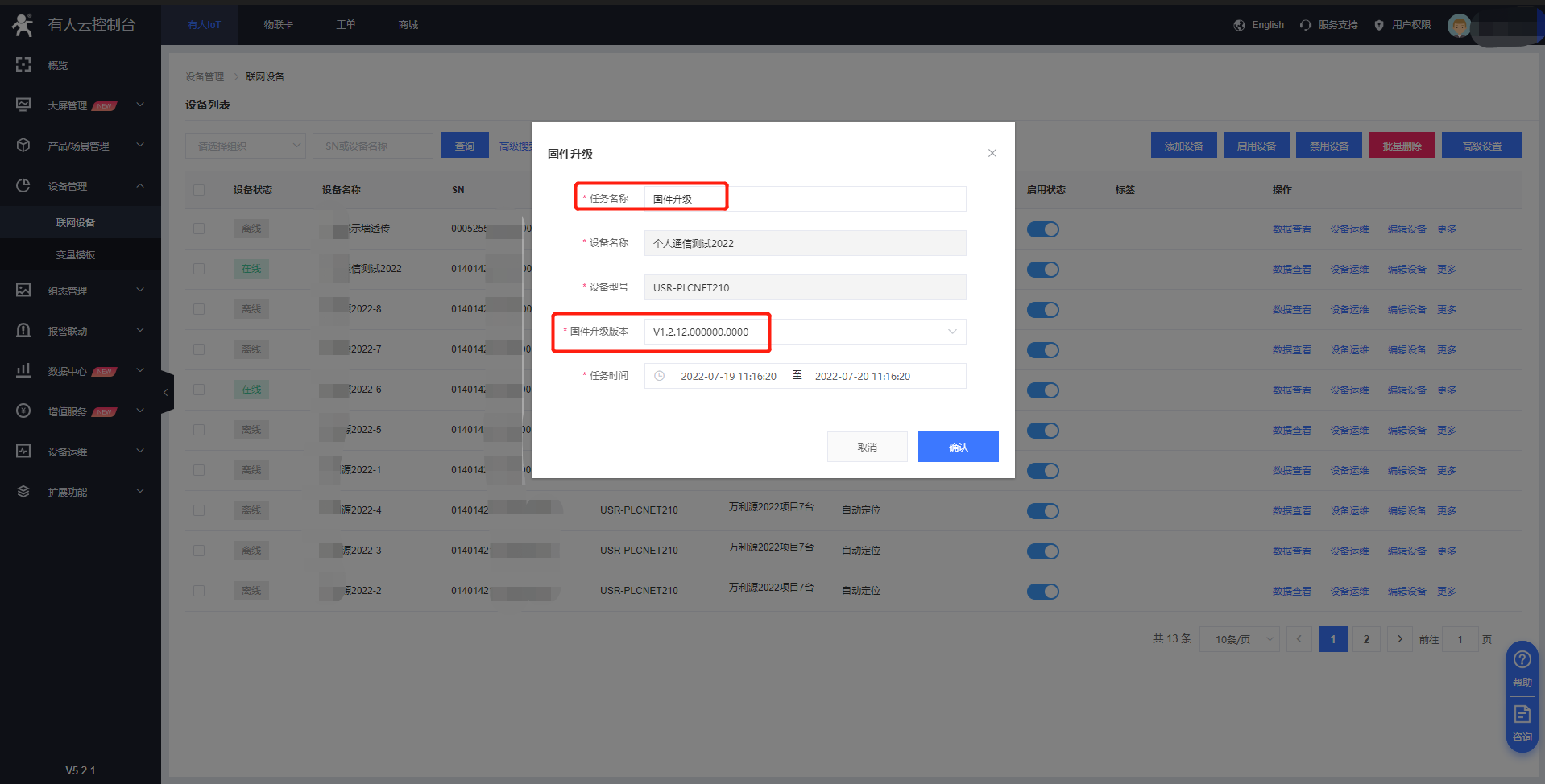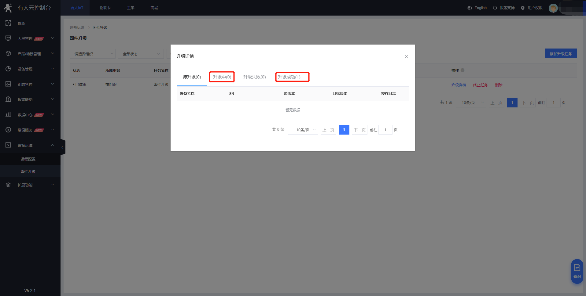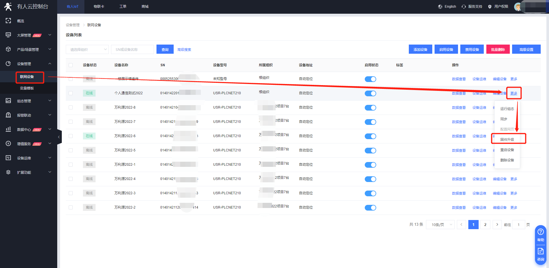 2. 設(shè)備管理--聯(lián)網(wǎng)設(shè)備--更多--固件升級