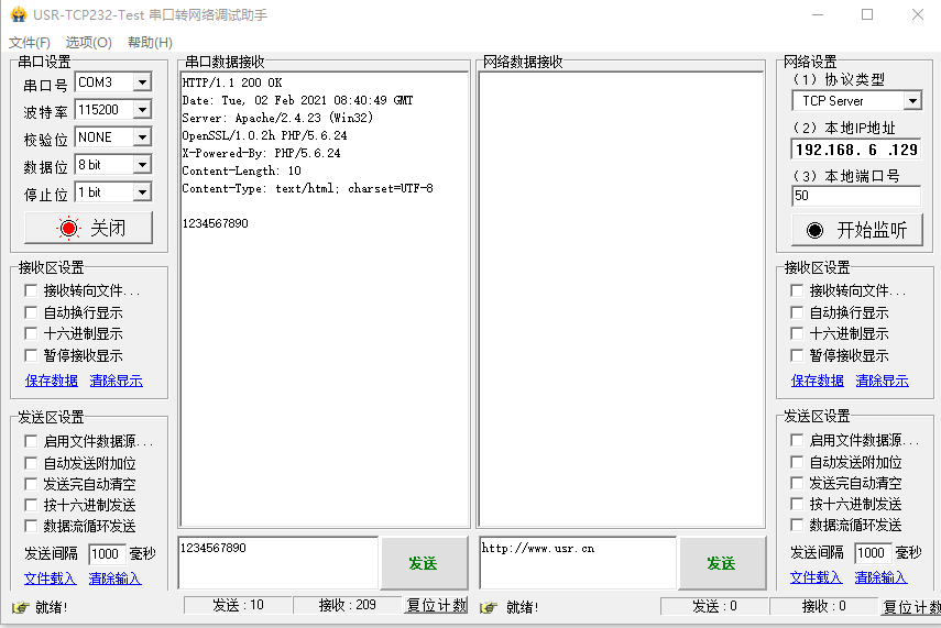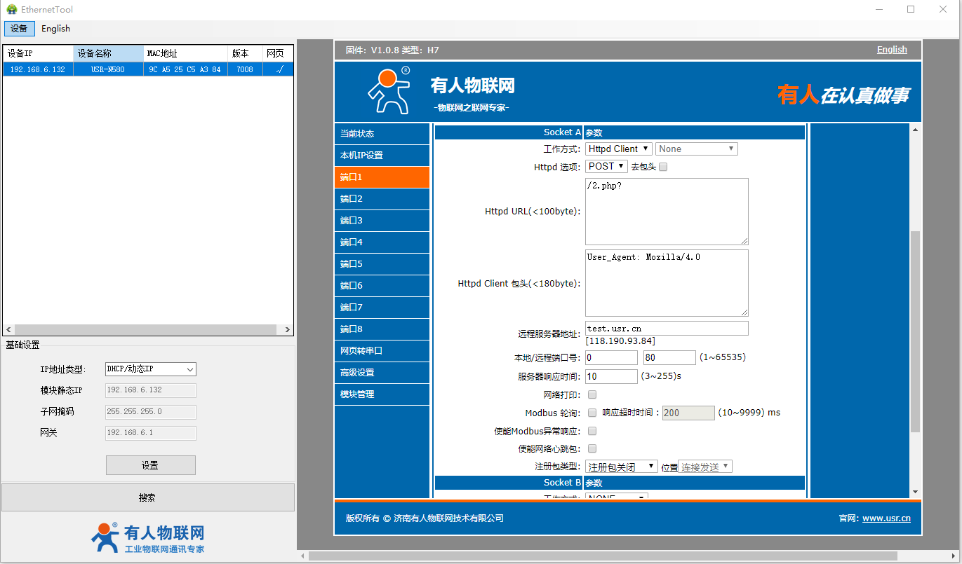 USR-N580-H7 HTTPD POST模式測(cè)試案例