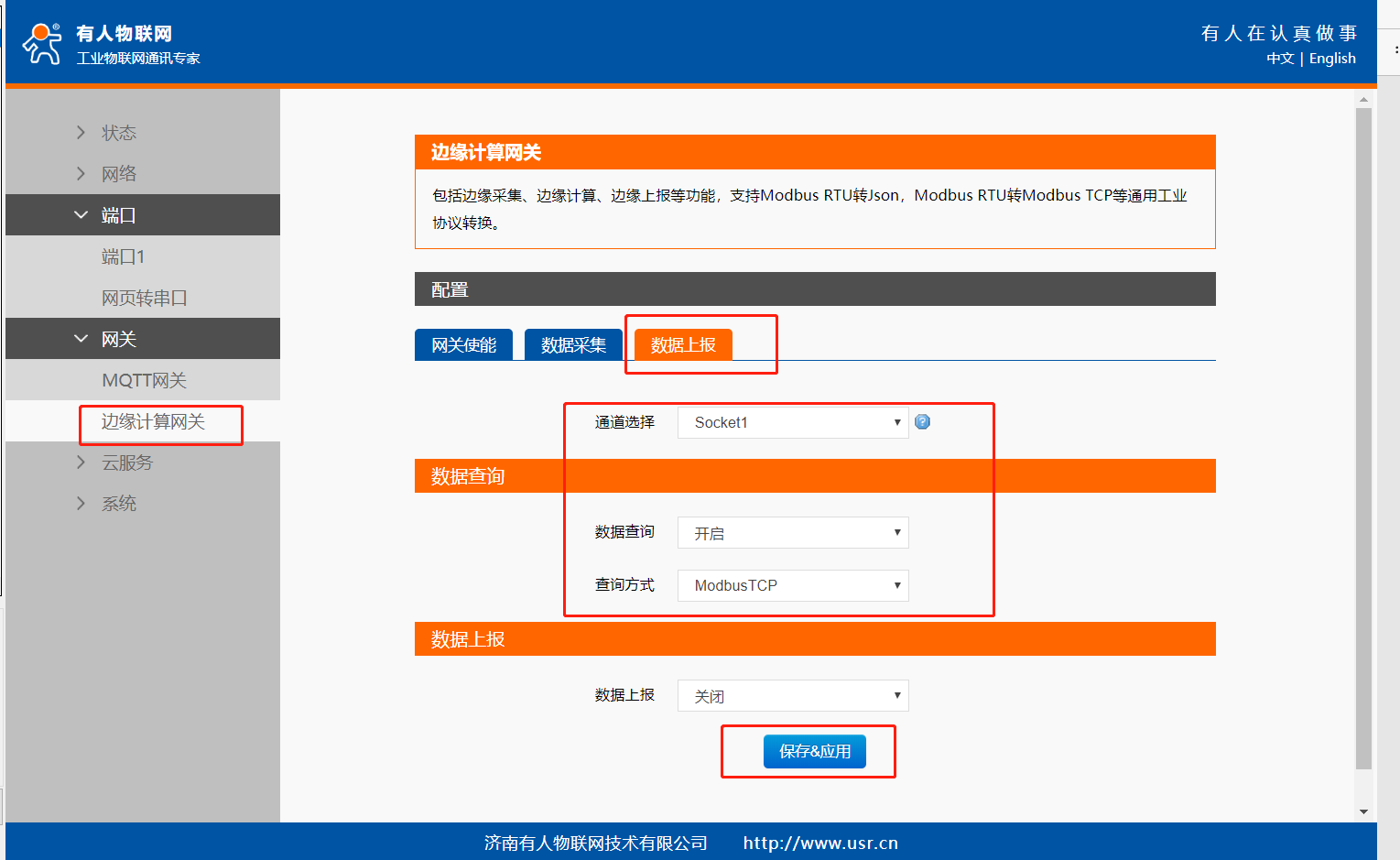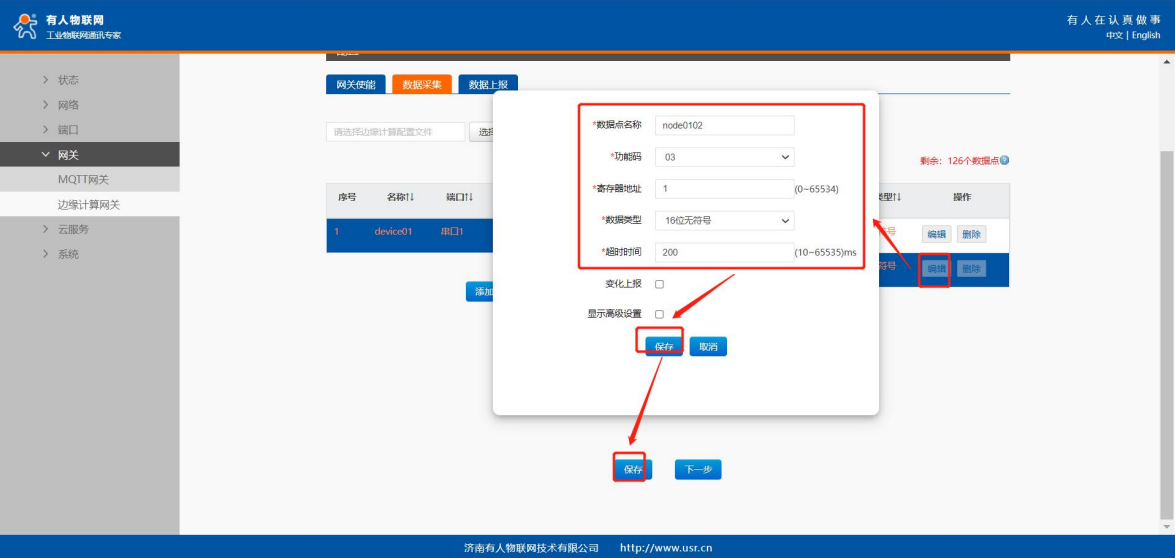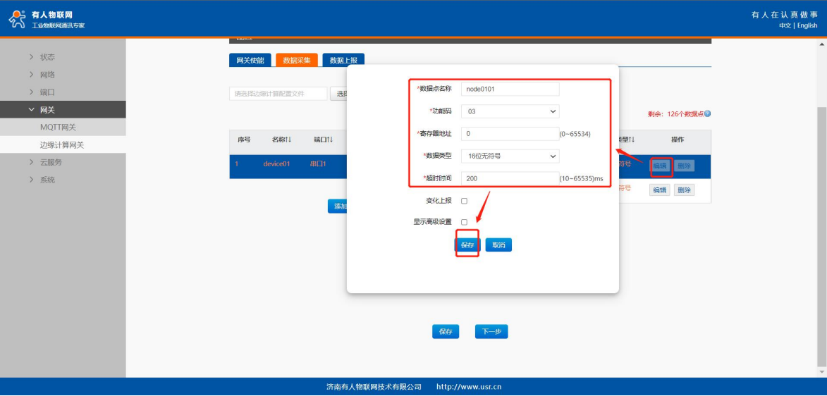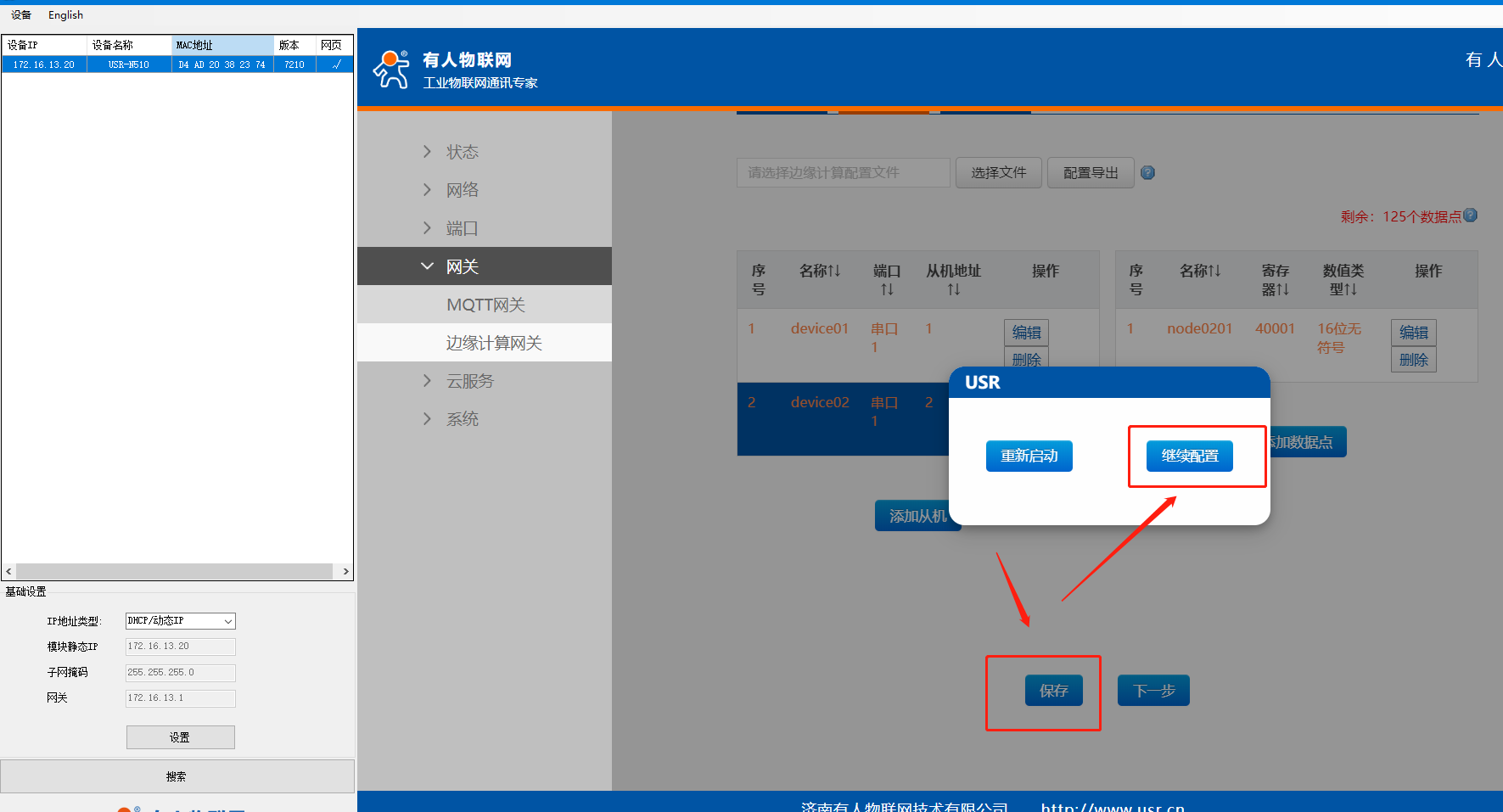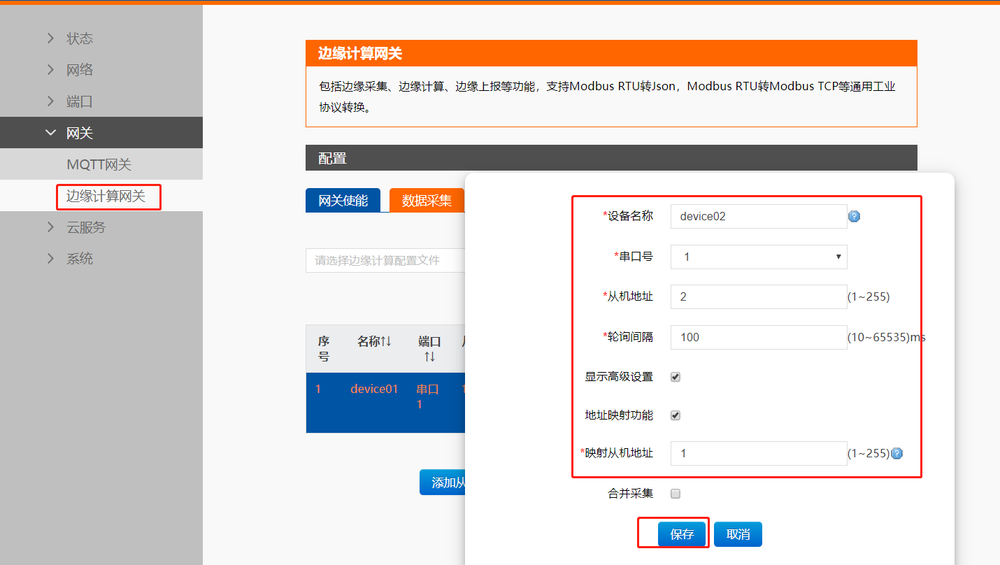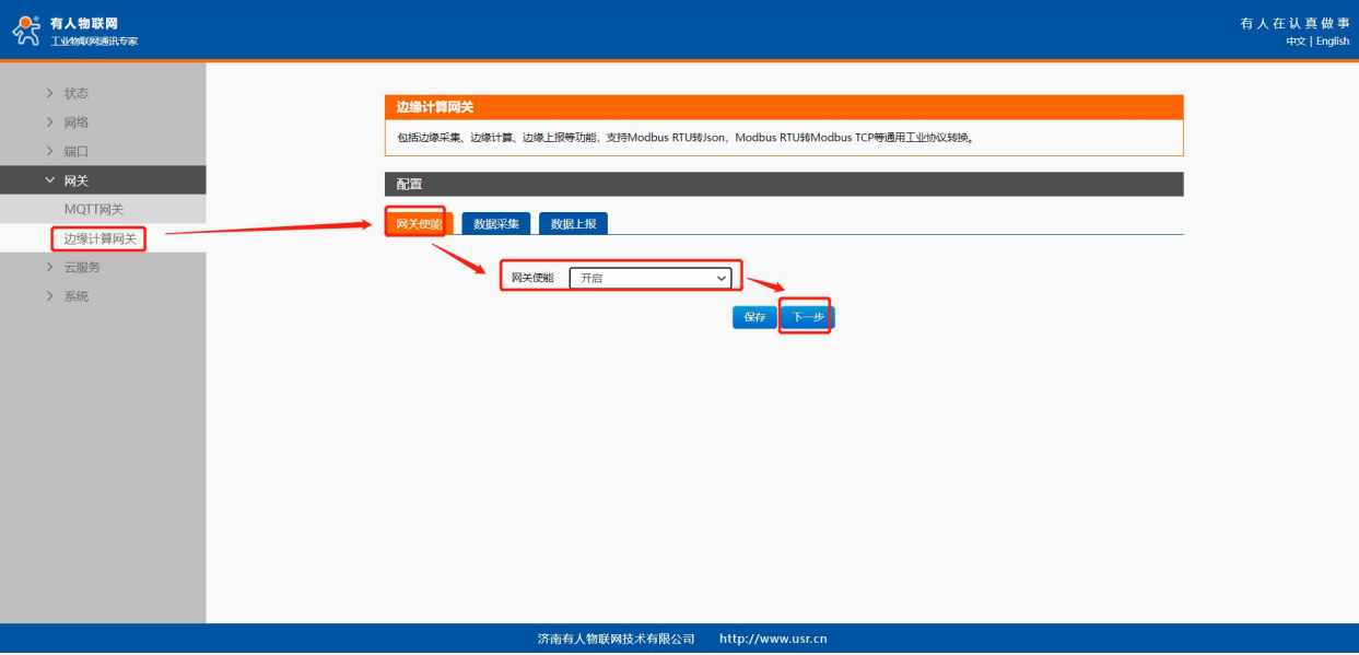 (1)進入N510的內置網頁,選擇網關下面的邊緣計算網關