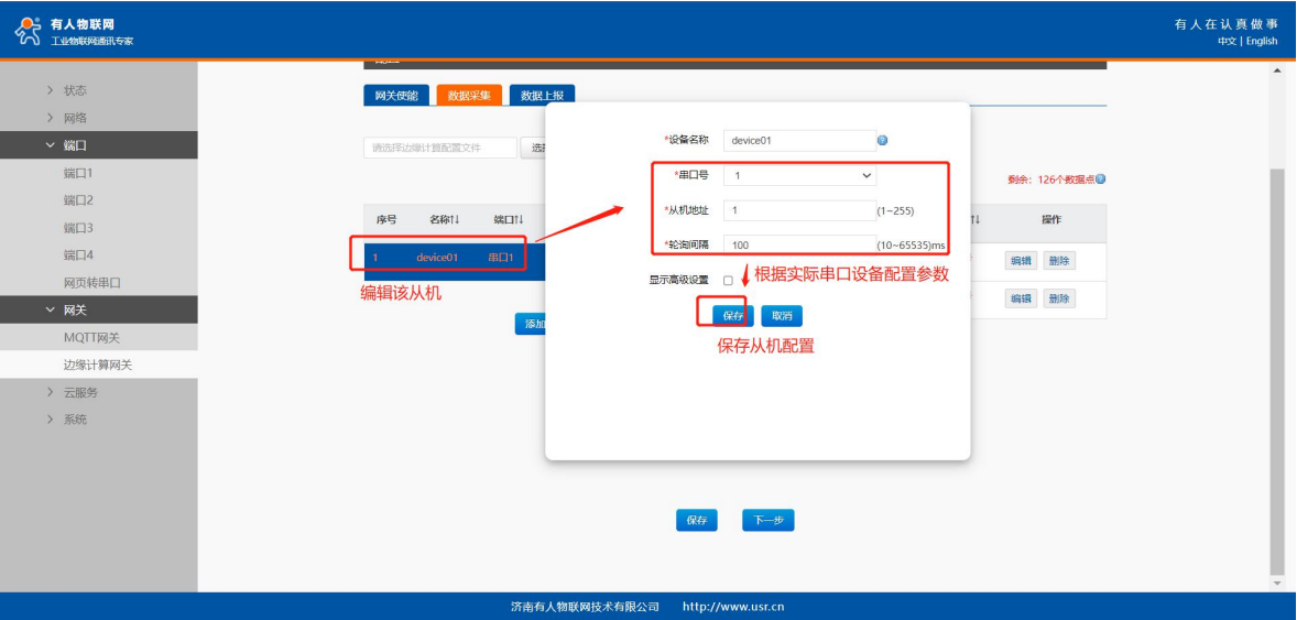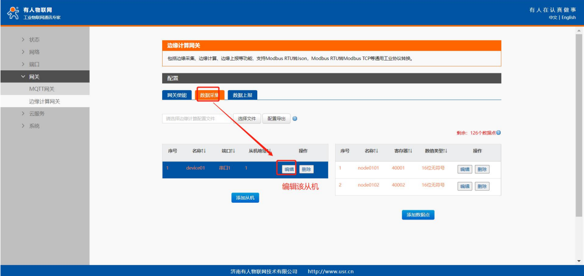 (2) 在“數據采集”配置頁選中默認從機,點擊“編輯”
