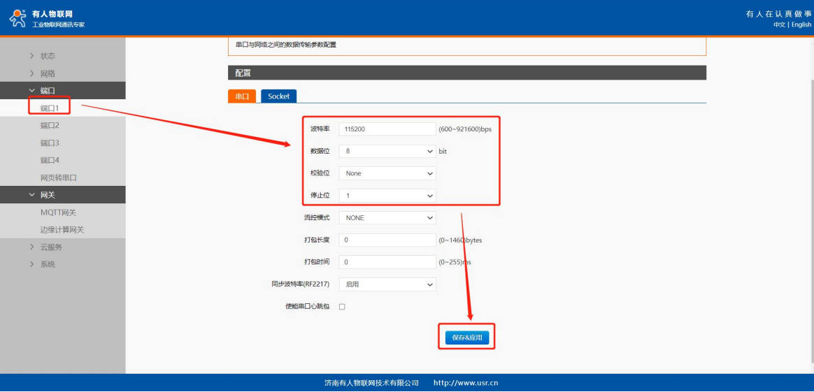 (1) 在“端口”--“端口 1”界面配置端口 1 串口參數