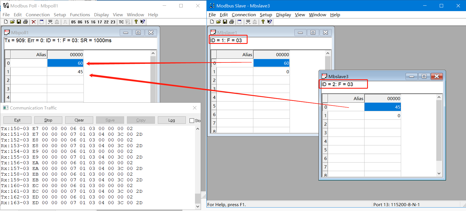 本例中配置串口號 1,從機地址 1,輪詢間隔 100