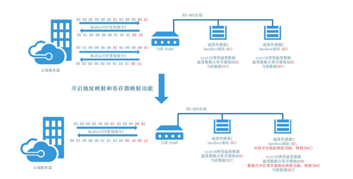 (2)與未開啟映射功能相比,可以通過將多個不同從機號的從機下的多個數據點,通過一條指令查詢多個從機下的多個數據點,實現邏 輯上的聚合。