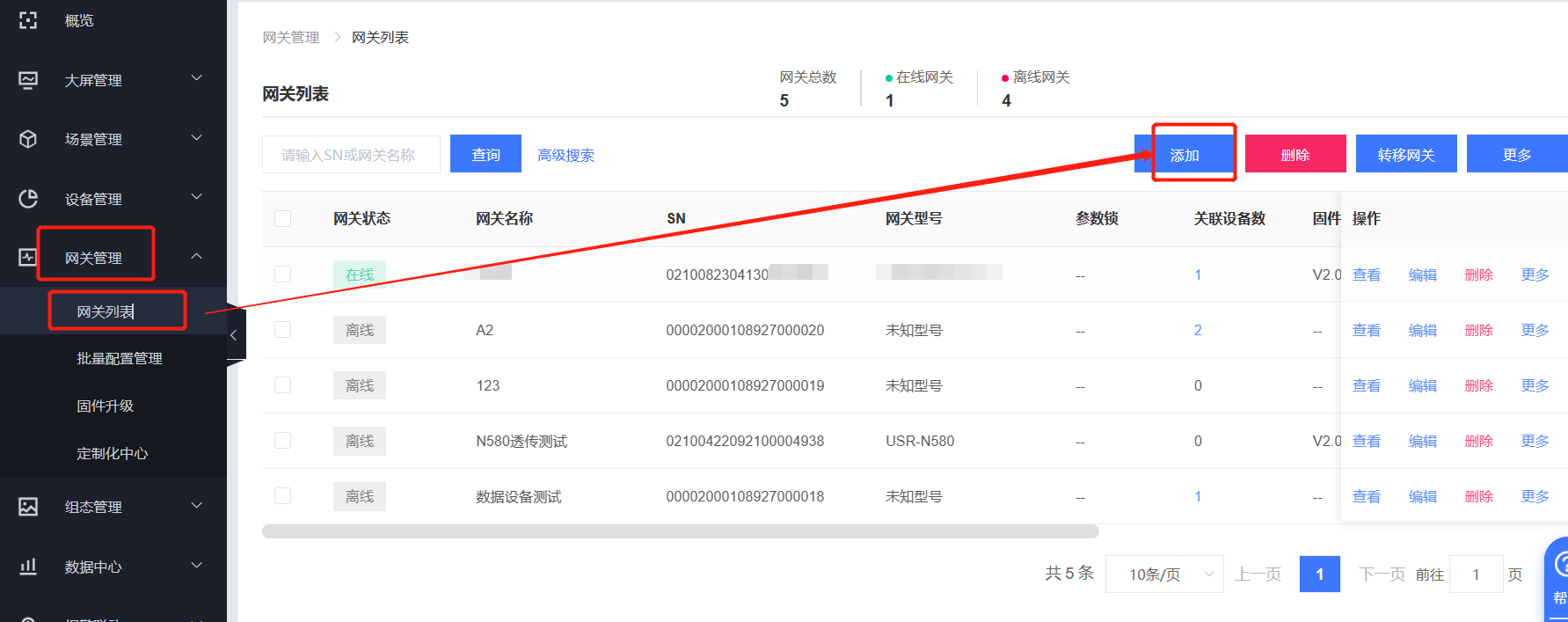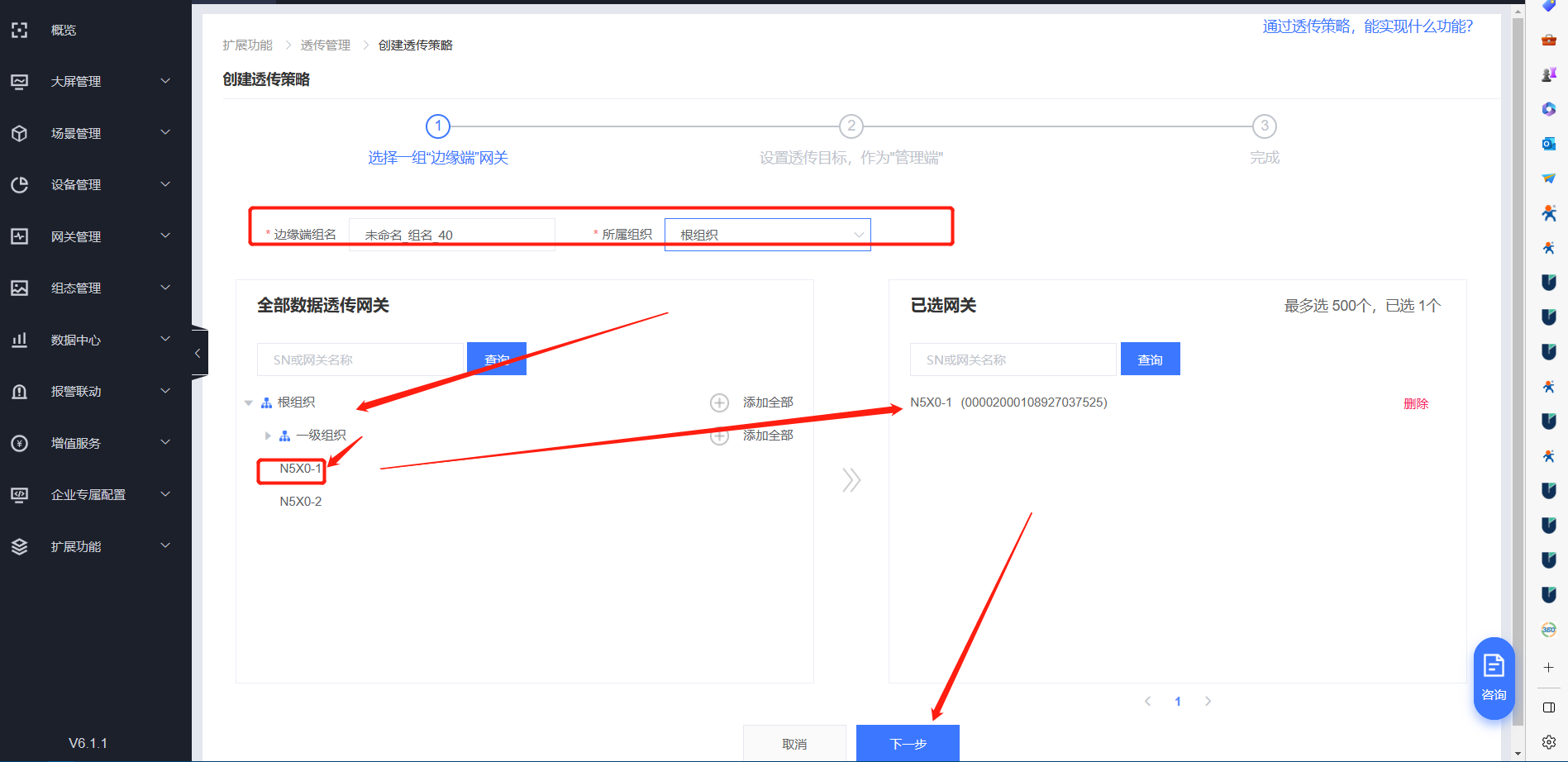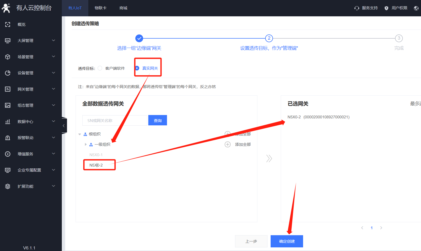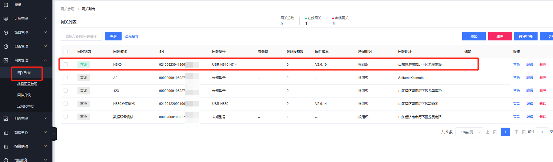 5、點(diǎn)擊網(wǎng)關(guān)管理----網(wǎng)關(guān)列表----添加網(wǎng)關(guān),選擇網(wǎng)關(guān)所屬組織,輸入N5X0的SN和MAC信息,勾選有人云透?jìng)?,點(diǎn)擊保存。